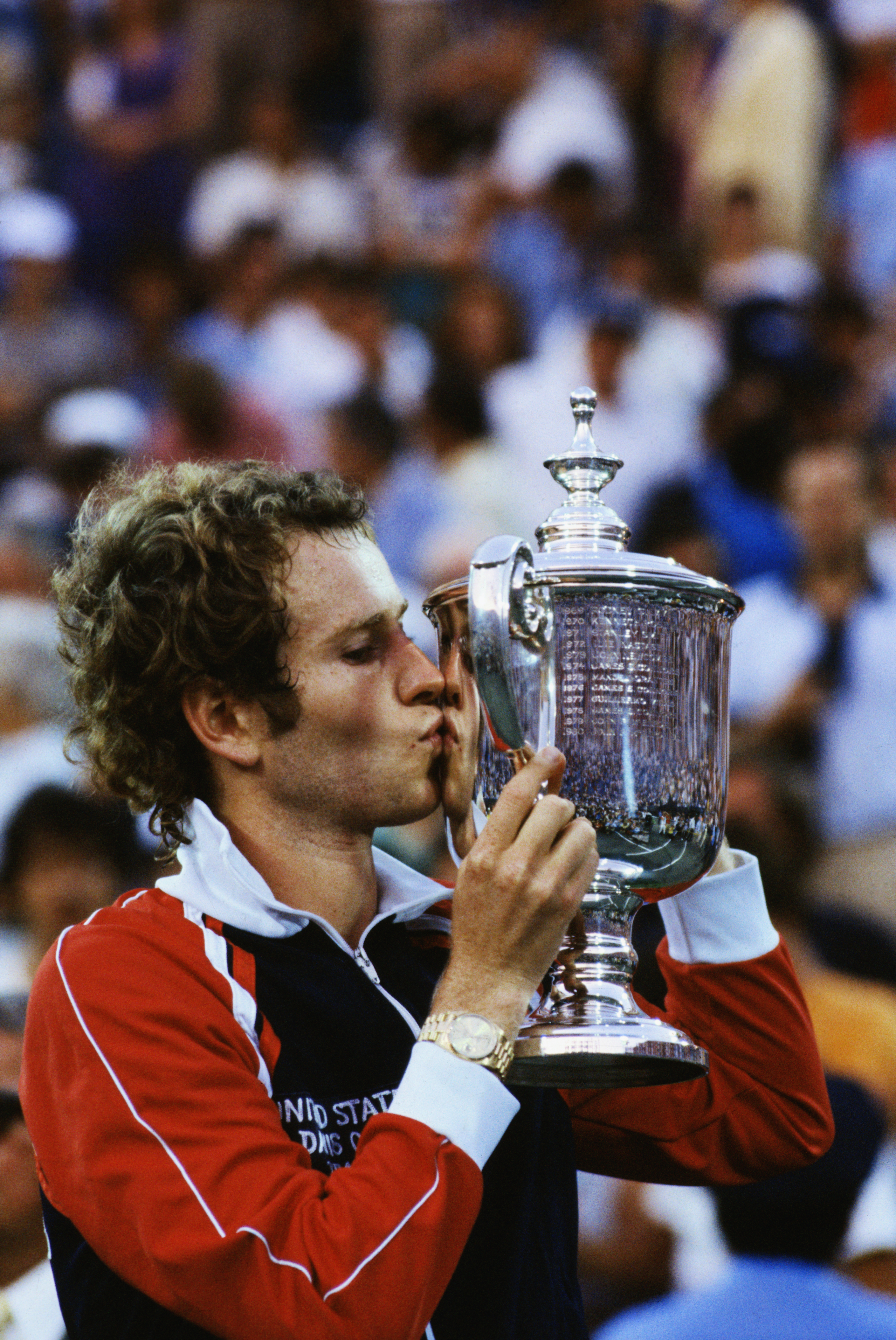 John McEnroe wearing A Rolex Day-Date and kissing the trophy following his third straight U.S. Open victory (1981)