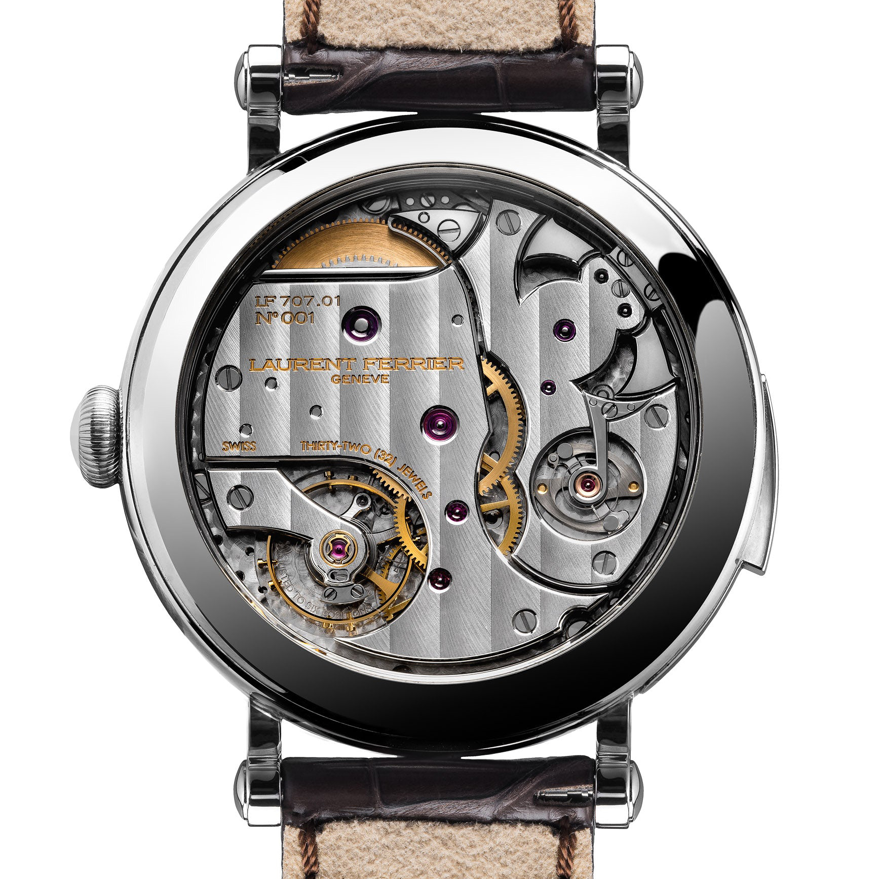 Without hearing it for oneself, it's tough to make an informed opinion about any chiming watch. But I will say that given Laurent Ferrier's track record – both at his own company and in his previous post – he seems to have an almost perfect pitch for making tasteful watches that get it right (pun totally intended). It's interesting to note that in the construction of the highly complex caliber made to power this watch, Ferrier has eschewed the Natural Escapement seen in so many of his watches, and which has become an expected signature to an LF design, in favor of a conventional Swiss Lever escapement. Nevertheless, as you can see in the caseback picture here, the finishing is everything that you'd expect from a watch from Laurent Ferrier.
