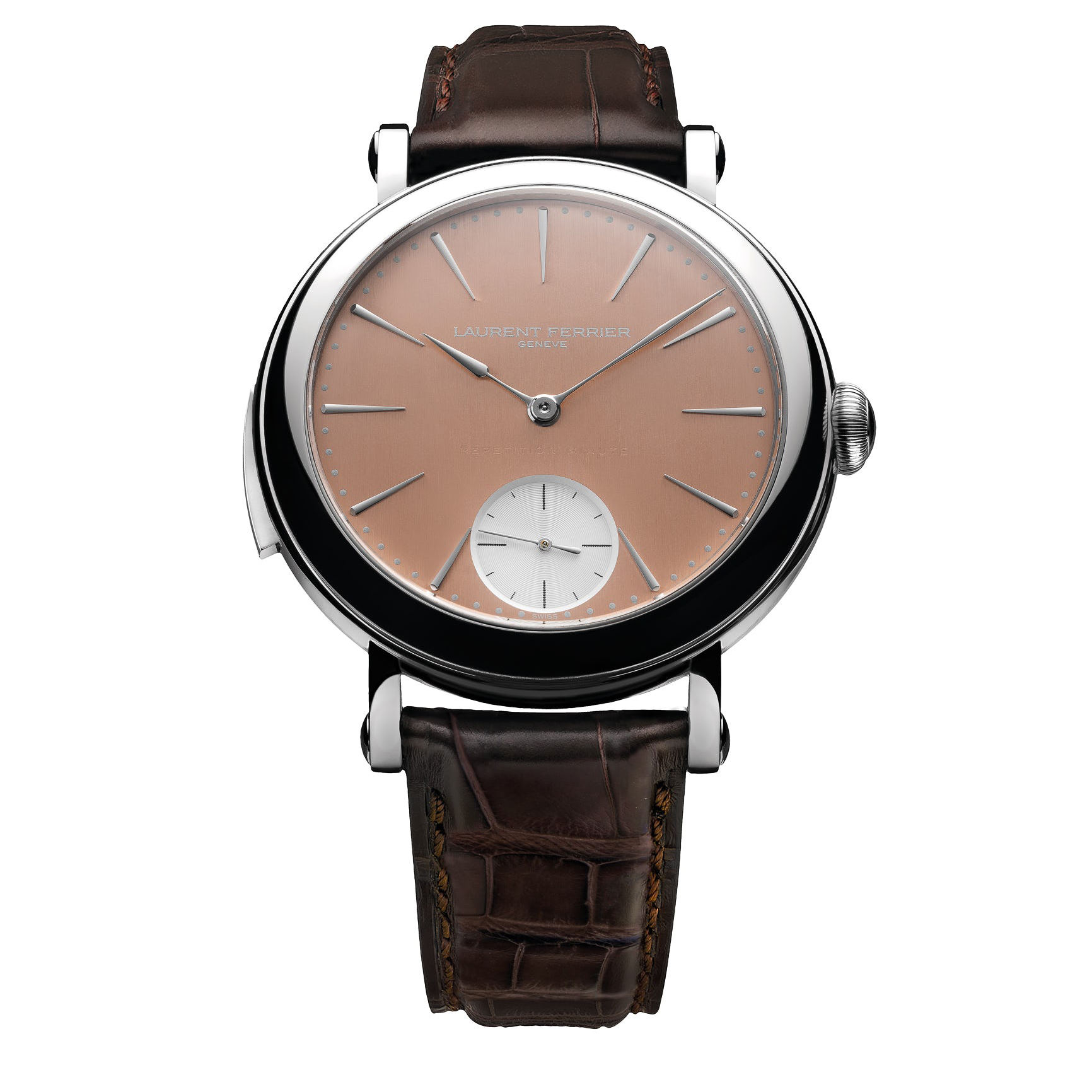 Today we have an early look at Laurent Ferrier's first minute repeater. Laurent Ferrier is a brand whose technical capabilities, world-class finishing, and spot-on design have been well documented here and elsewhere. The brand's namesake founder was technical director of Patek Philippe for 37 years, and he has dabbled in complications high and low, making a GMT, a tourbillon, and an annual calendar, to name just three watches created under his own name. Now we see the brand's first ever-minute repeater, and it comes in a beautiful stainless steel Galet case paired with a warm salmon-colored dial. What a great combination white metal cases and a salmon dials make! Am I right? With a watch like this though, it's really all about how it sounds and Laurent Ferrier opted for a stainless steel case because of its superior acoustic properties and the light and clear tone it produces.
