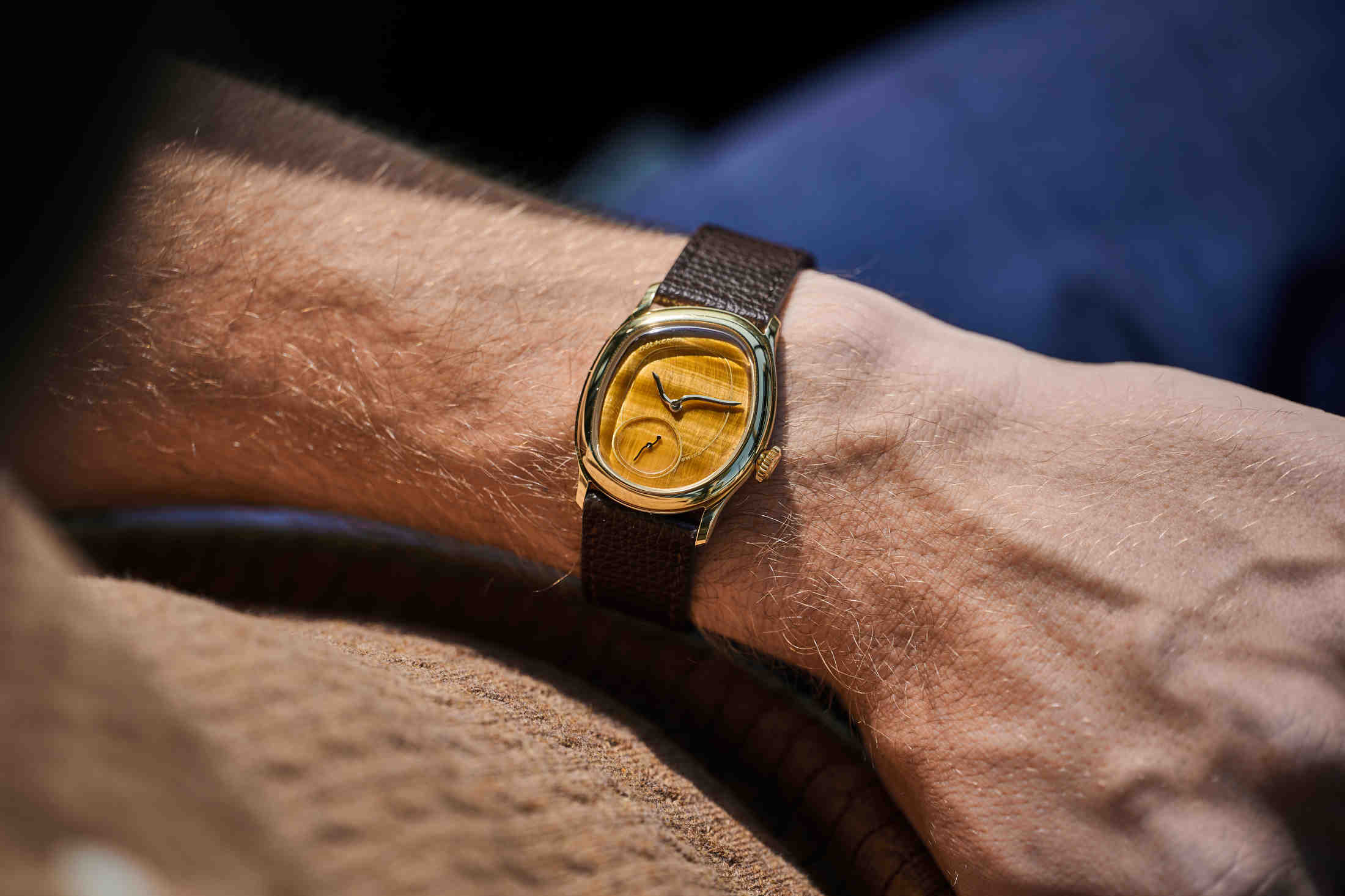 That's all well and good, and actually means a lot to someone like me who, you know, cares about how watches are made, but what really sets things off here are the more proportional cases (34mm, but wear like 36-37 imho), and the incredible stone dials. They are doing white gold with lapis lazuli (from Afghanistan), and yellow gold with tiger eye (from South Africa), which is my personal favorite. The wild thing about this is the small second register is sculpted by hand from a single piece of stone. Traditionally, registers in stone dials are cut separately. This is insanely cool – and delicate – and beautiful.